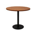 Round meeting table available in 2 different top sizes and colours with a flat disc base with a choice of frame finishes.